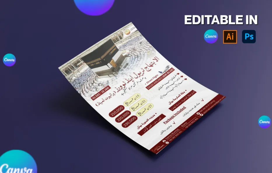 - ️Professionally designed Umrah or Hajj flyer