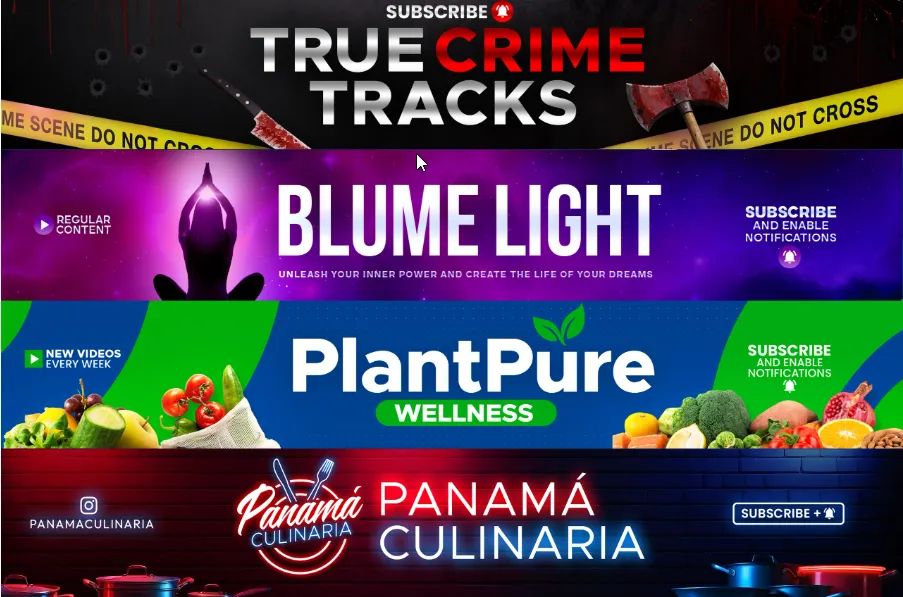 Looking to make your YouTube channel stand out? I will design a custom, eye-catching YouTube banner and logo that reflects your content and grabs your audience's attention!